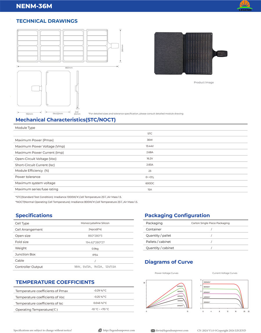 foldable 36w solar panel
