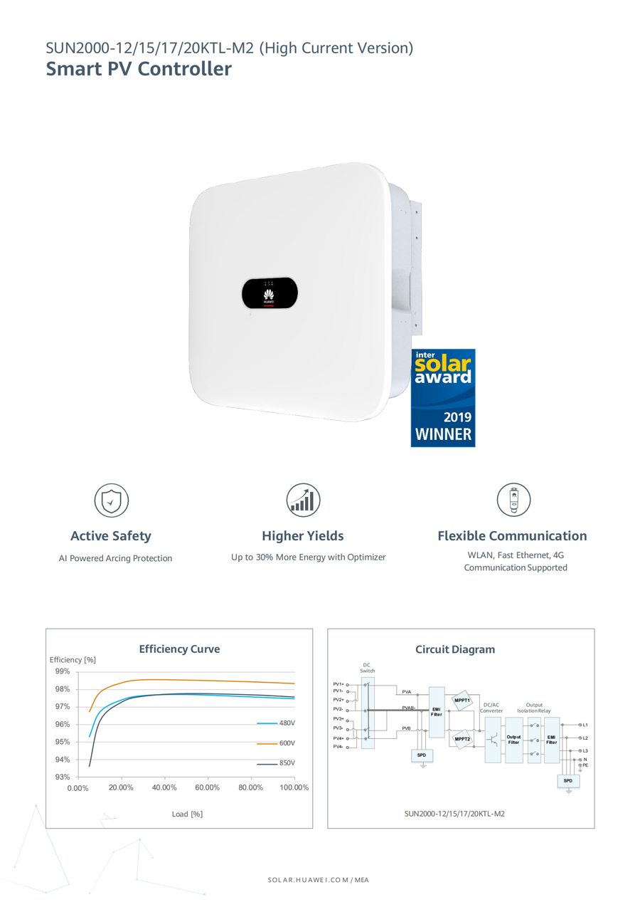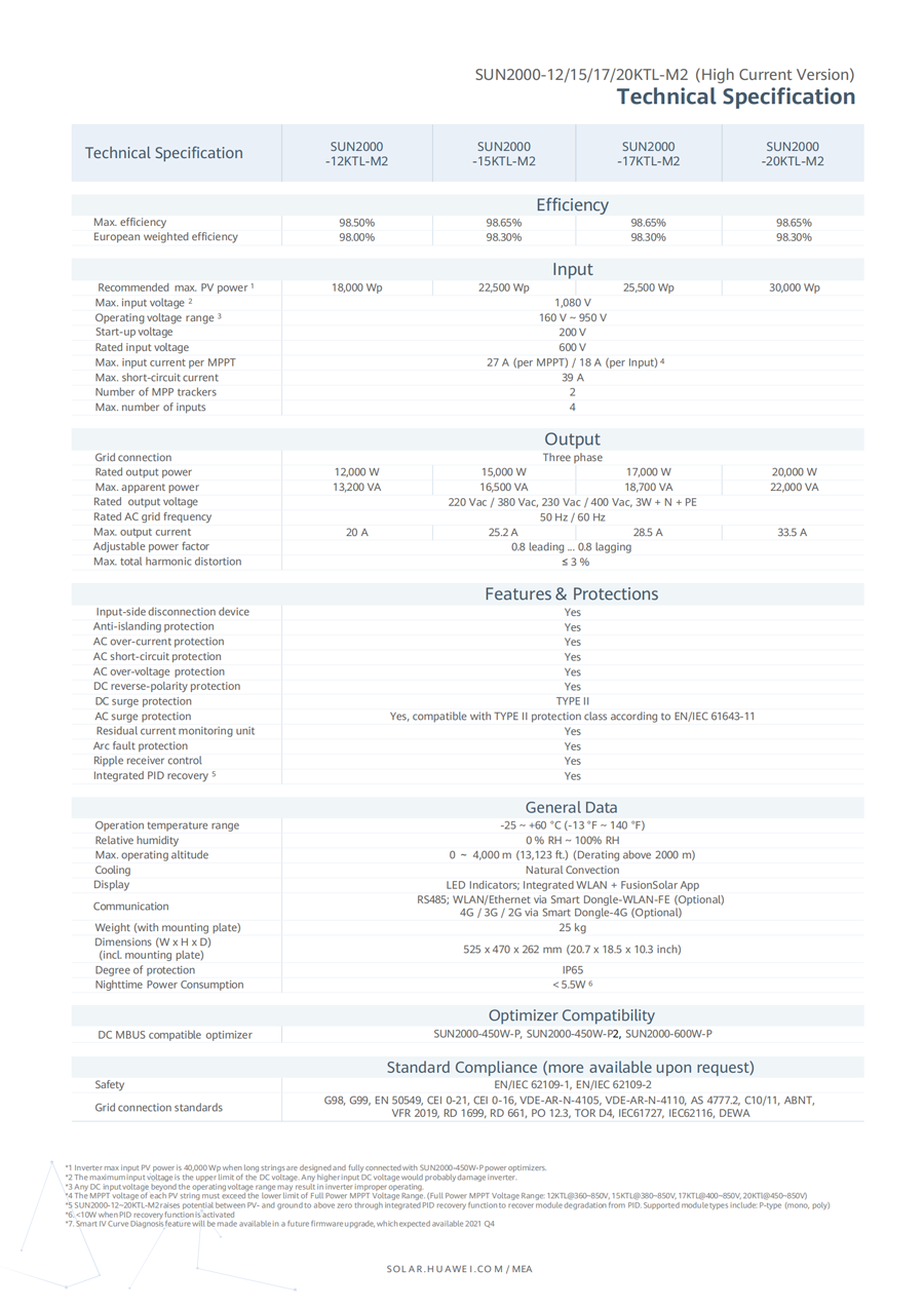 Model Number: SUN2000-12/15/17/20KTL-M2 (High Current Version)