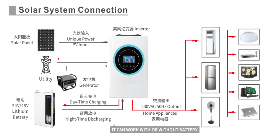 1.Pure sine wave,Hybrid on&off inverter can feed to grid