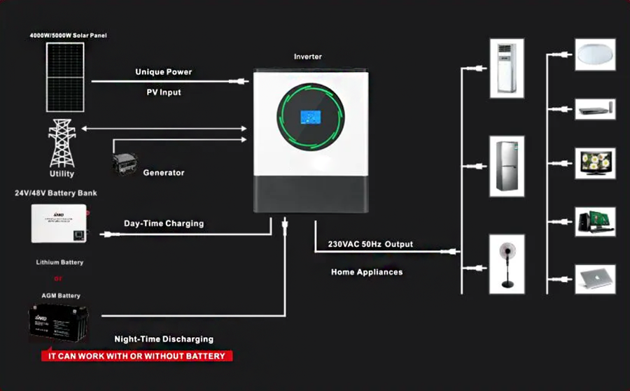 1.3 IN 1: MPPT INVERTER, ON GRID/OFF GRID/HYBRID.