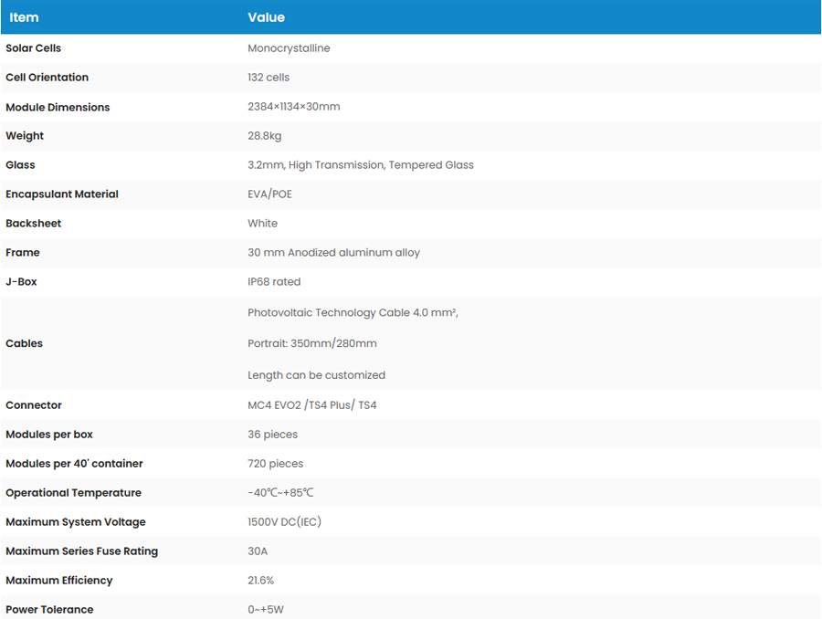 BackSheet Monocrystalline Modules565-585